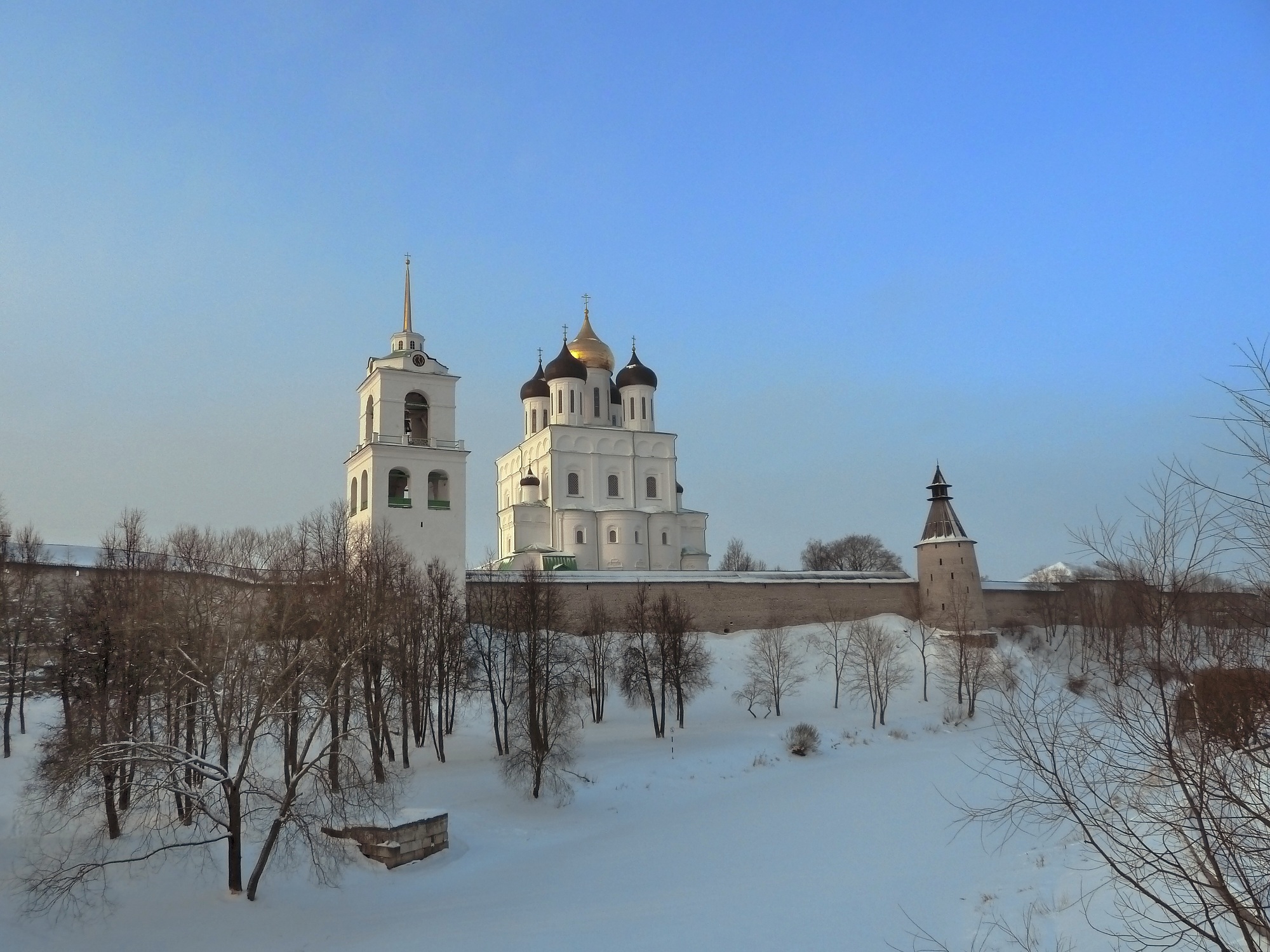 Более эффектно он выглядит со стороны реки Великой.